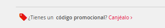 Encontrarás el apartado para aplicar tu código promocional antes de la selección del método de pago. Tendrás que pulsar sobre la opción "Canjéalo":