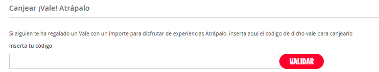 Y en el siguiente paso deberás indicar el código del Vale Atrápalo y validarlo: