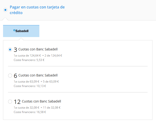 Pago en cuotas Banco Sabadell